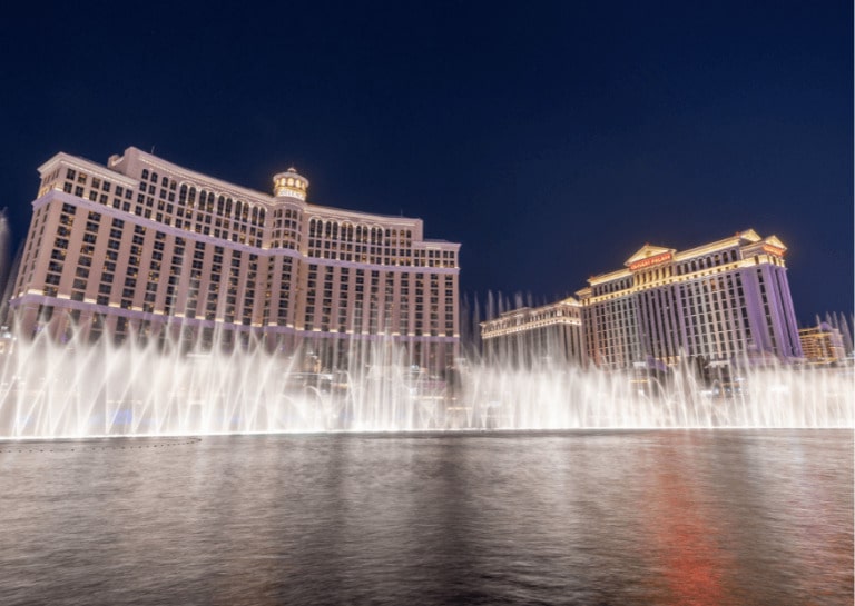 - Alojarte en una habitación del Bellagio con vistas a las fuentes.